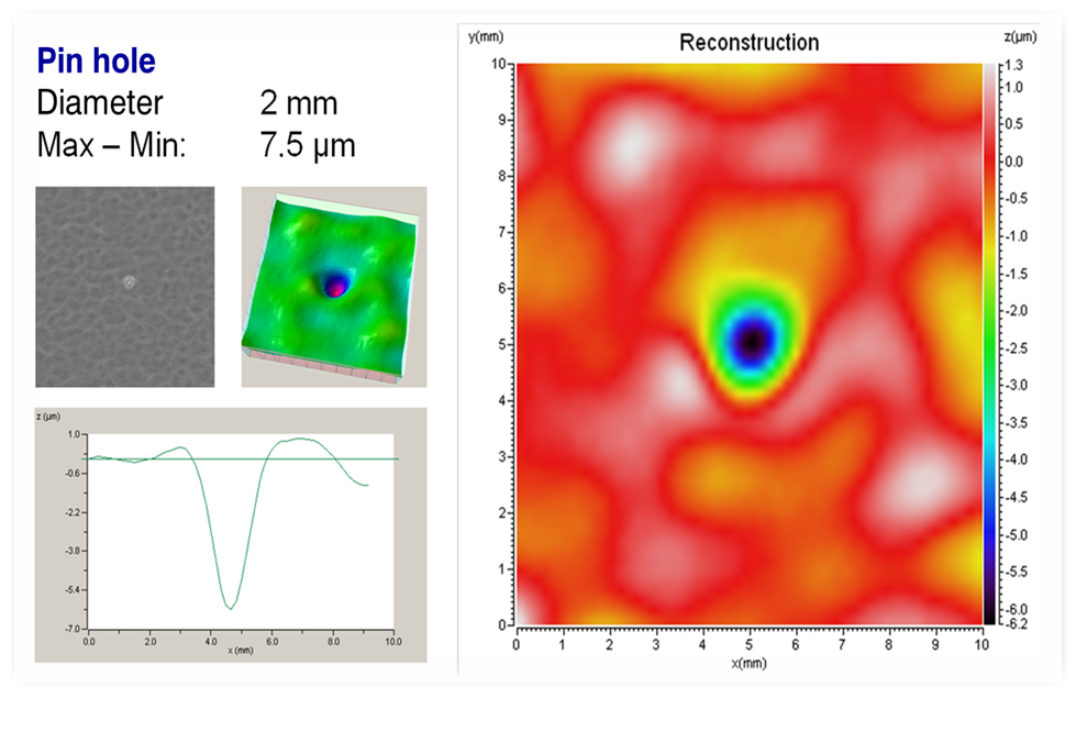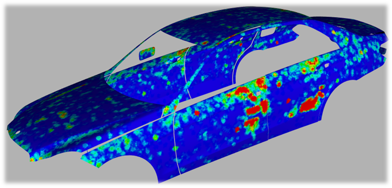 Encoreʼs defect detection system utilizes a Micro-Epsilon reflectCONTROL sensor that is based on the principle of phase measuring deflectometry to provide robotic defect detection for the full exterior surface of automotive vehicles as well as components and parts.