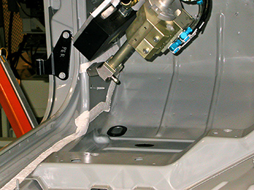 Sealer Application Approaches including interior Seam, Finesse, LASD, Hem and UBC. Integrated vision systems included fixed cameras and robot mounted cameras. Integration of seam quality vision systems with interactive quality display monitors to help with operator inspection and repair. Turn Key systems with safety fencing, tip dress windows, tip clean off assemblies, support structures, safeties and controls.