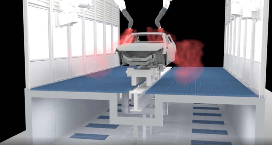 This Global Automotive manufacturer selected TKS Industrial Company as the general contractor for PTED, paint booths, ovens, conveyors, sealing, and paint delivery systems for their new Mexico factory. The design of the new paint booths includes a new horizontal dry booth design which will capture 99% of paint overspray.